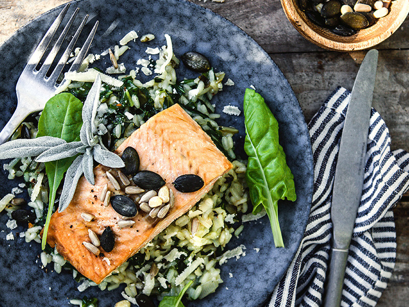 Wenn du etwas Warmes brauchst – aber keine schwere Küche – ist dieses Rezept dein Freund. Der gebratene Wildlachs bringt Power, das Risotto mit Wirsing eine Portion Gemütlichkeit. Ein kleines Festessen für Alltag und Wochenende. Und ein Beweis dafür, dass sich Soulfood und Nährstoffe nicht ausschließen müssen.