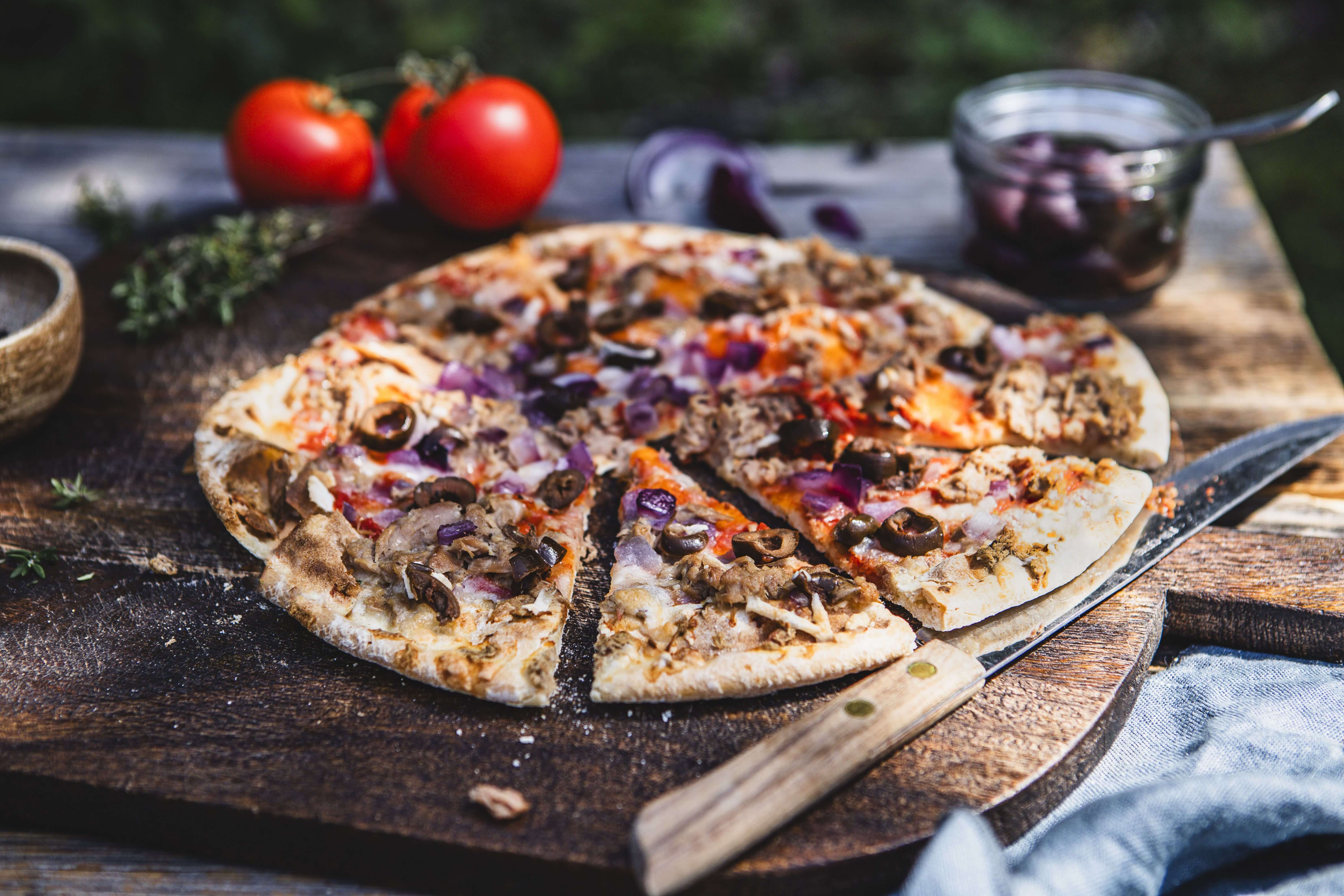 Ein knusprig dünner Boden geht eine Verbindung mit frischen Zutaten ein. Eine fruchtige Tomatensauce, knackiges Gemüse, Käse, Fisch, … oder auch vegan.