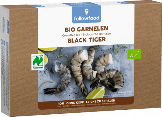 Unsere Bio-Garnelen Black Tiger stammen aus einem Naturland-Projekt in den Mangrovenwäldern Vietnams. Hier geht nachhaltige Waldbewirtschaftung einher mit Bio-Garnelen-Farming. Die Garnelen sind bereits entdarmt. Die Schale ist vorgeschnitten, um euch das Schälen nach dem Garen zu erleichtern.