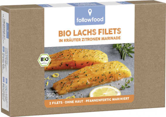 Unser followfood Klassiker mit dem gewissen Extra. Bei diesem zarten Bio-Lachs haben wir uns so richtig ins Zeug gelegt. Er ist nicht nur wie gewohnt portioniert und praktisch grätenfrei, sondern durfte zudem auch noch in einer würzig-frischen Marinade aus Kräutern und Zitrone baden. So ist eigentlich schon fast alles erledigt und Dir bleibt nur noch, ihn einfach zu genießen!