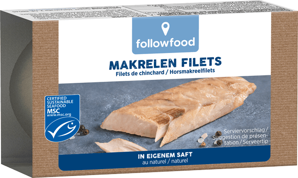 Die followfood MSC-Makrele wird besonders effizient gefangen, da es sich bei der Makrele um einen Schwarmfisch handelt. Der Bestand ist somit sehr dicht und es braucht nur wenig Einsatz, um genug Fisch zu fischen. So bleibt der CO2-Fußabdruck hier klein und hat weniger Auswirkungen auf die Natur und unser Klima als andere Fischarten und Fangmethoden. Durch die MSC-Zertifizierung der Fangmethode und der Fanggebiete ist der Bestand gesund und stabil.