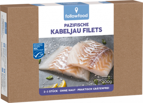 Die Fänge unseres Kabeljaus stammen aus MSC zertifizierten Fischereien im Nordpazifik und erfüllen zusätzlich unsere eigenen Fischereirichtlinien. Gefangen wird er mit Grundlangleinen, einer Methode, die im Vergleich zu Grundschleppnetzen den Meeresgrund deutlich schont.