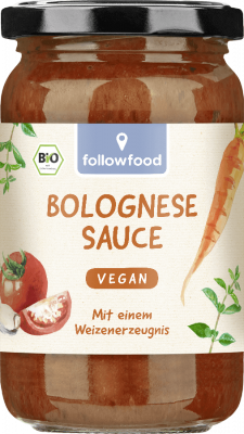 Außerdem kommt die followfood Bio Bolognese Sauce Vegan ganz ohne Fleisch und Soja aus. Darüber freut sich nicht nur Dein Gaumen, sondern auch die Umwelt: im Vergleich zu einer klassischen Rezeptur mit Rinderhack schont sie Land, Wasser und Klimaressourcen.