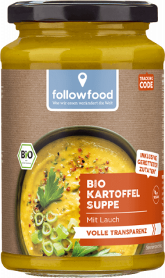 Unser Beitrag gegen Lebensmittelverschwendung: diese Bio-Suppe gibt bereits aussortiertem Gemüse eine zweite Chance. Die Produkte aus unserem followfood "gerettet" Sortiment enthalten beste Bio-Lebensmittel, die es sonst nie in den Supermarkt geschafft hätten. In dieser leckeren Suppe vereinen sich Kartoffeln, Karotten und Lauch zum cremigen Genuss.