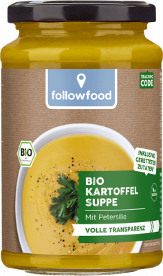 Unser Beitrag gegen Lebensmittelverschwendung: diese Bio-Suppe gibt bereits aussortiertem Gemüse eine zweite Chance. Die Produkte aus unserem followfood "gerettet" Sortiment enthalten beste Bio-Lebensmittel, die es sonst nie in den Supermarkt geschafft hätten. In dieser leckeren Suppe vereinen sich Kartoffeln, Süßkartoffeln, Karotten und Petersilie zum cremigen Genuss.