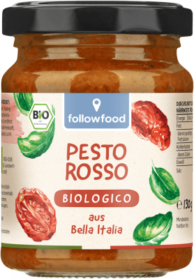 Dieses leckere Bio Pesto Rosso überzeugt durch seinen kräftigen, unverwechselbaren Geschmack. Es wird nach traditionellem Rezept im schönen Piemont, Norditalien, für Dich zubereitet. Die verwendeten Tomaten stammen ebenfalls aus der Region und sind dank der hügeligen Landwirtschaft und der Nähe zum Meer besonders süß und aromatisch. Echter Parmigiano Reggiano und hochwertiges Olivenöl sorgen für feinsten Genuss. Natürlich stammen alle Zutaten aus biologischem Anbau. Die genaue Herkunft kannst Du, wie bei allen followfood Produkten, über den Tracking Code auf jedem Glas nachvollziehen.