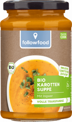 Unser Beitrag gegen Lebensmittelverschwendung: diese Bio-Suppe gibt bereits aussortiertem Gemüse eine zweite Chance. Die Produkte aus unserem followfood "gerettet" Sortiment enthalten beste Bio-Lebensmittel, die es sonst nie in den Supermarkt geschafft hätten. In dieser leckeren Suppe vereinen sich Karotten, Kokosmilch und Ingwer zum cremigen Genuss.